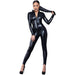 Experience the thrill of the hunt with Fever Miss Whiplash's sleek Black Zip Up Catsuit.