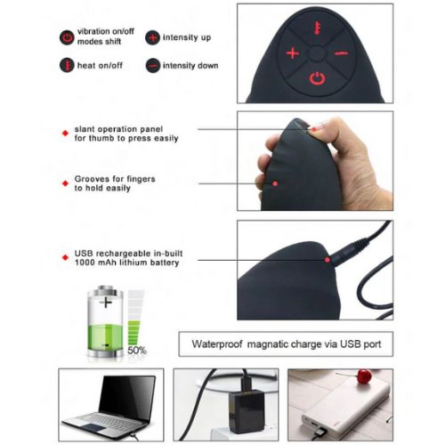 Functions: 6 vibration patterns, 3 speeds. Warming to 40°C.